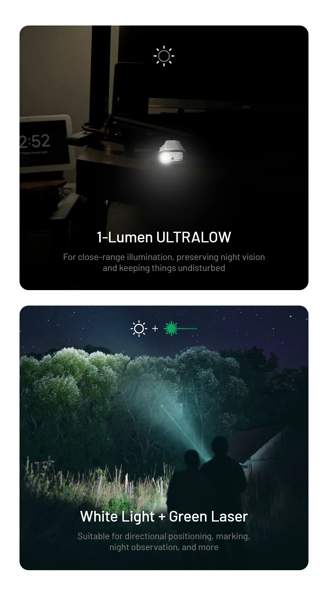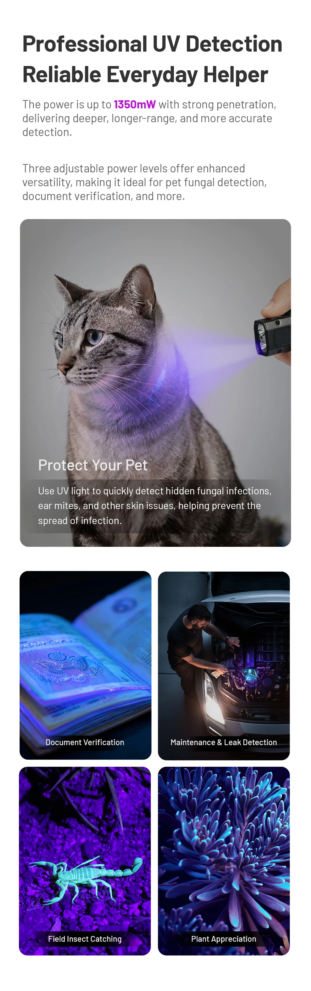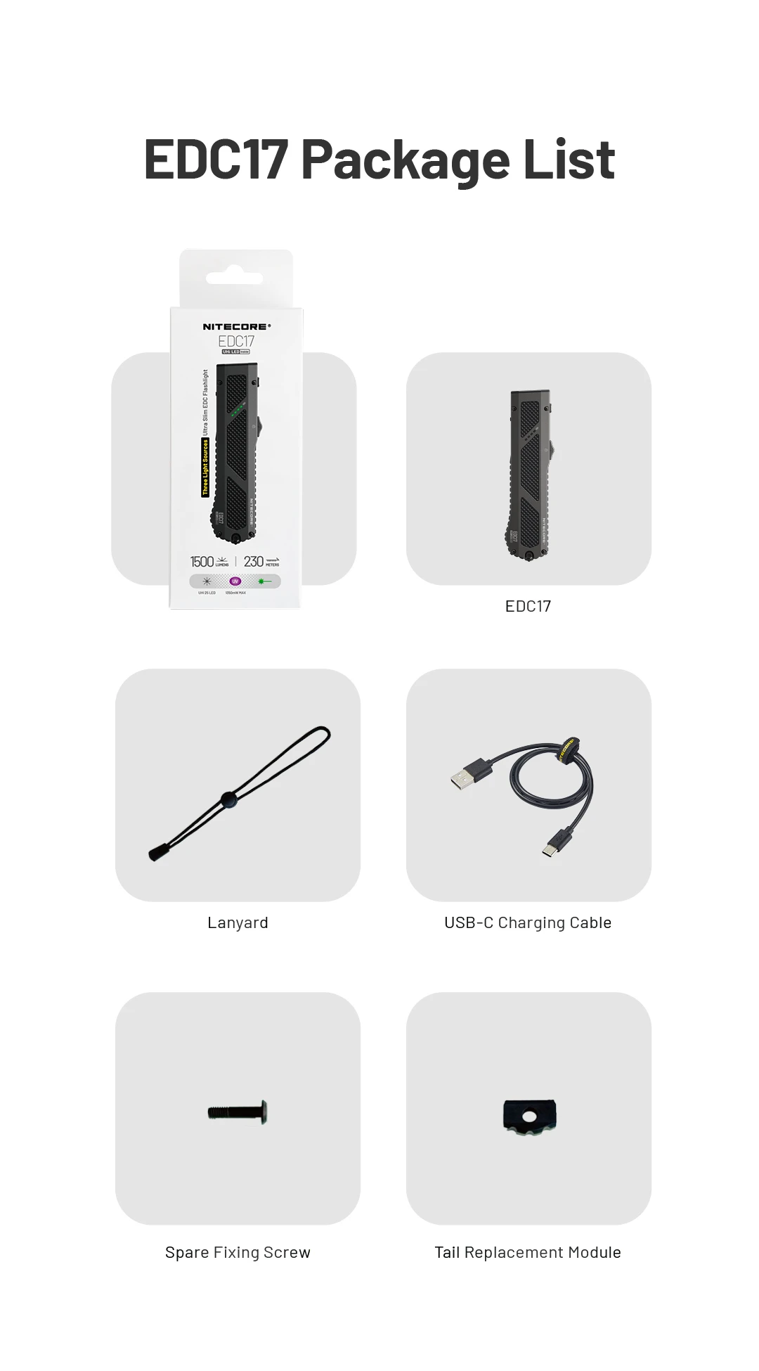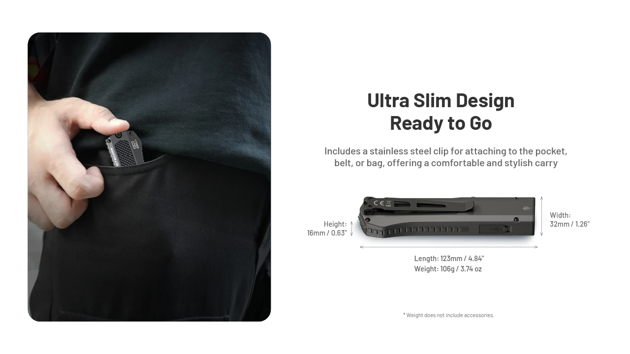 The NITECORE EDC17 Ultra Slim EDC Flashlight features three light sources: a 1,500-lumen white light, a 1,350mW UV light, and a <5mW green laser. Its simple design allows users to slide to turn it on and press to switch modes, making it a reliable everyday companion.
