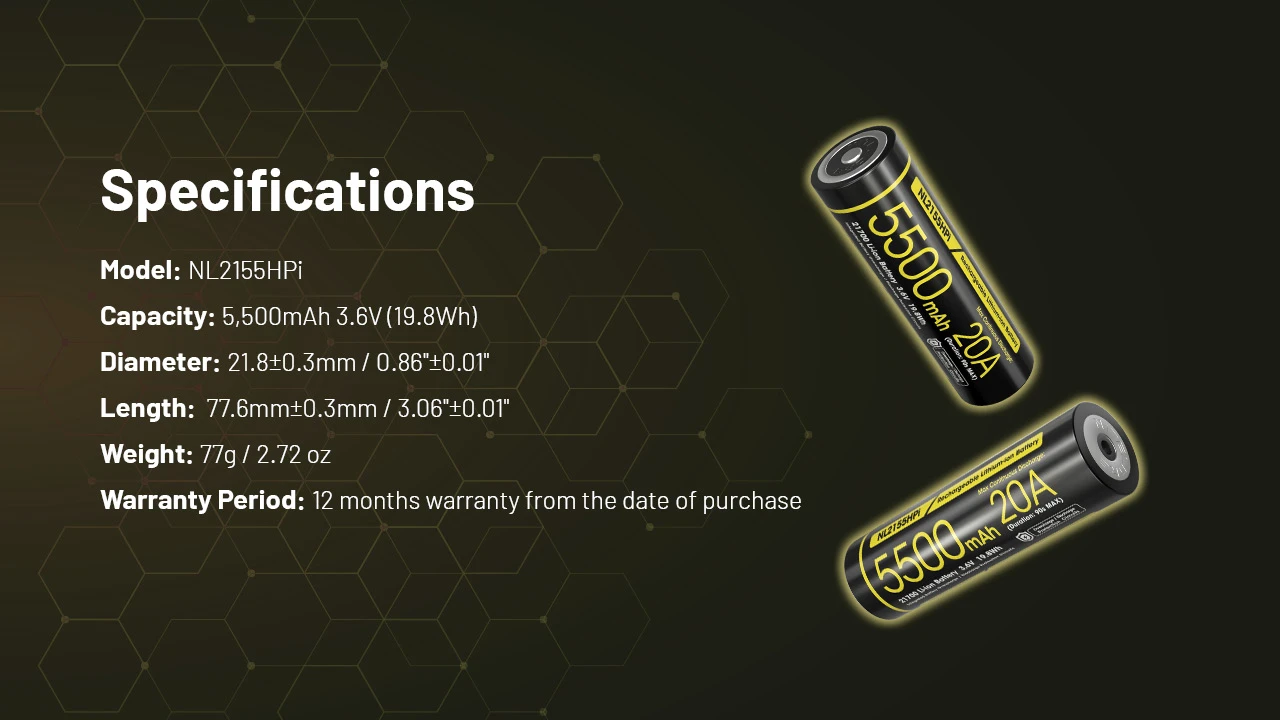 Specifications: Capacity: 5,500mAh 3.6V (19.8Wh)